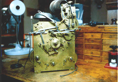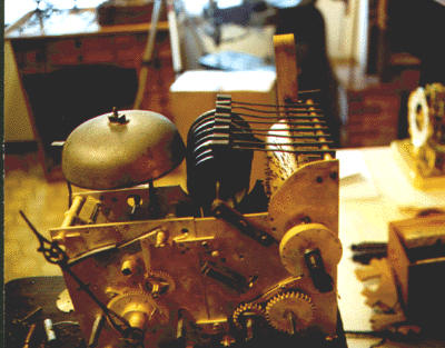 These services make up a large portion of our business. We are factory authorized to repair all clocks that we sell. We have the workshop and experience to restore any clock. We must say that the workshop is kept quite busy and we are not advertising for more work at this time. We restore antique clocks for collectors all over the U.S. This is labor intensive and delicate work. If we can be of help call or e-mail us. Estimates are free of charge. Please do not ship work without speaking to us first. Below are some pictures of our work.